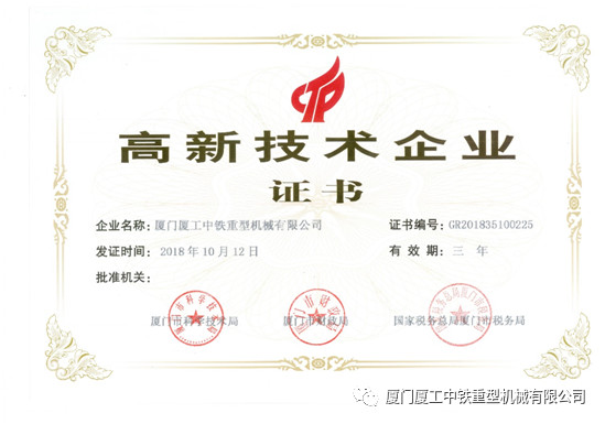 新年伊始,廈門(mén)廈工中鐵重型機(jī)械有限公司又傳喜訊:公司榮獲“國(guó)家高新技術(shù)企業(yè)”證書(shū)(證書(shū)號(hào):GR201835100225)。這是繼2015年首次榮獲《高新技術(shù)企業(yè)》稱(chēng)號(hào)之后,今年再續(xù)殊榮。本次高新復(fù)審證書(shū)由廈門(mén)市科學(xué)技術(shù)局、廈門(mén)市財(cái)政局、國(guó)家稅務(wù)總局廈門(mén)市稅務(wù)局共同頒發(fā),有效期三年。